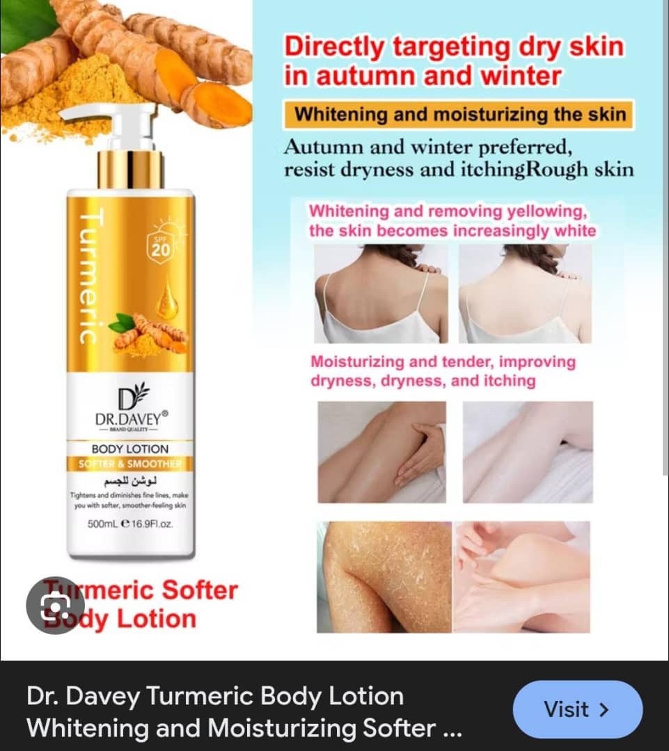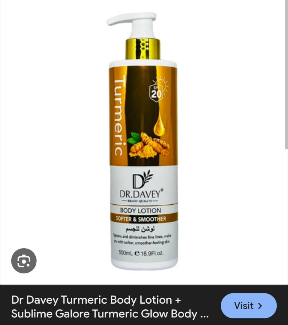 Experience radiant and healthy-looking skin with Dr. Davey Turmeric Body Lotion. Enriched with natural turmeric extract, this lotion helps brighten dull skin, reduce dark spots, and promote an even tone. Its lightweight, non-greasy formula absorbs quickly, leaving your skin soft, moisturized, and refreshed all day. Perfect for daily use, it nourishes and protects your skin while restoring its natural glow.