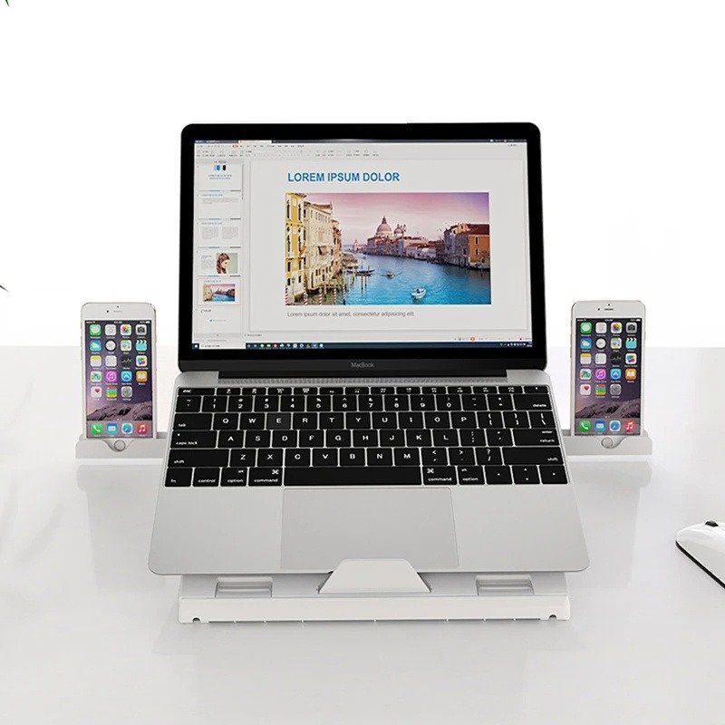 Laptop Riser with Heat-Vent: This Macbook stand has a big hole for ventilation, and is designed with a cooling slot, insert a cooling silicone pad into the corresponding cooling slot, adjust it to the appropriate position according to the needs of its own notebook and tablet. which is to cool down your laptop by providing more airflow than if it were lying flat on the table.